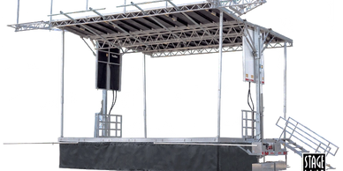 We are fortunate to offer a Stageline SL100 to our clients. The SL100 is a highly configurable stage with a base floor size of 24' x 20'. It is expandable to 24' x 24' under the cover of the roof, plus the option to add stage left and right extensions under the flybys (8' x 8' each). The stage has a 11,400 lb rigging capacity with a variety of rigging options to fit production needs. We can easily customize any package for you from just a basic stage rental to a fully loaded stage with sound, lighting, and video for your event.